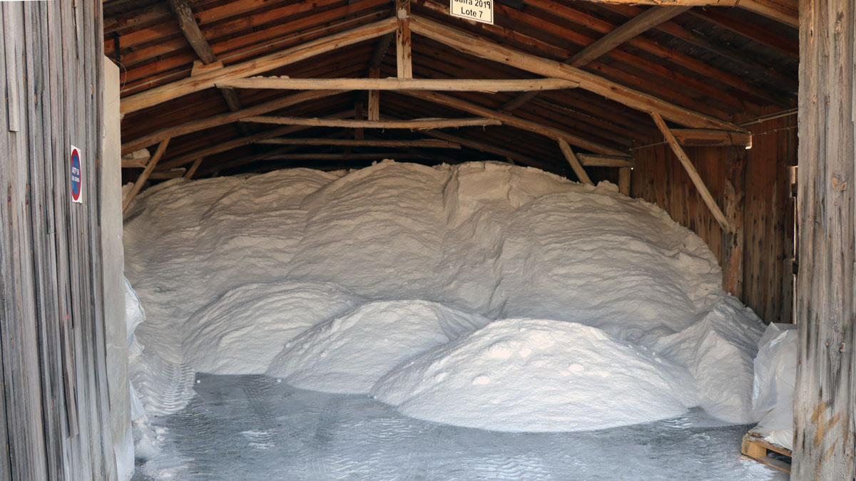 Depois de rapado, o sal é colocado nas eiras em forma de pirâmide e aí permanece a secar durante cerca de 60h, antes de ser transportado para os armazéns. Juntar o sal em forma de pirâmide permite acumular um maior volume de sal nas eiras, para além de servir de proteção para o caso de chuva, uma vez que a água escorre pela camada exterior da pirâmide, permitindo que o sal que está no interior permaneça seco.