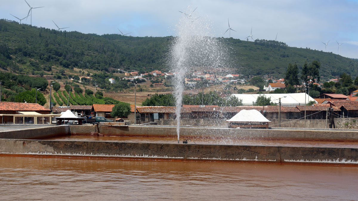 [3] Normalmente a água é retirada do poço com cerca de 15 graus, e quando sai dos concentradores já tem cerca de 20 graus, começa a fazer sal por volta dos 23, 24 graus.