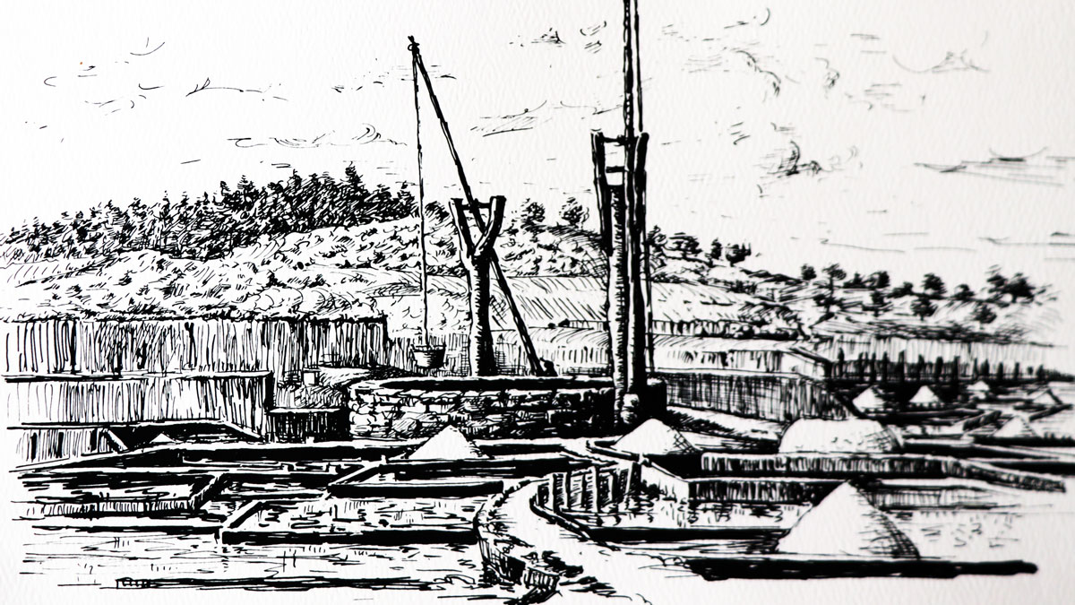 Reprodução de gravura das salinas de Rio Maior ©Memória Imaterial.