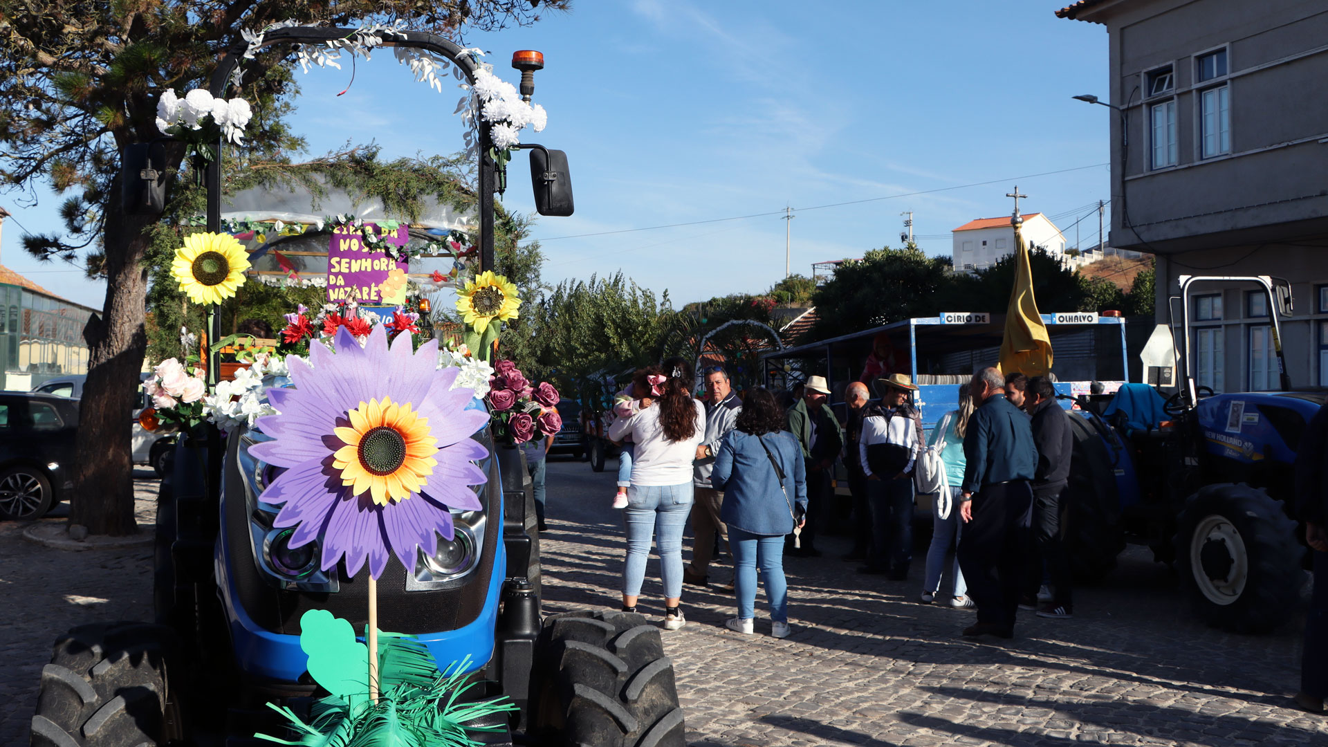 João Pedro, da Pocariça, proprietário de um trator, descreve com entusiasmo esta fase: “As pessoas gostam muito de ver o Círio a passar, e interagem muito connosco. Acenam, nós acenamos, é bonito”. Cada trator é engalanado com palmeiras, murta, festões, bandeirinhas e flores artificiais, testemunhando a dedicação de cada família.
