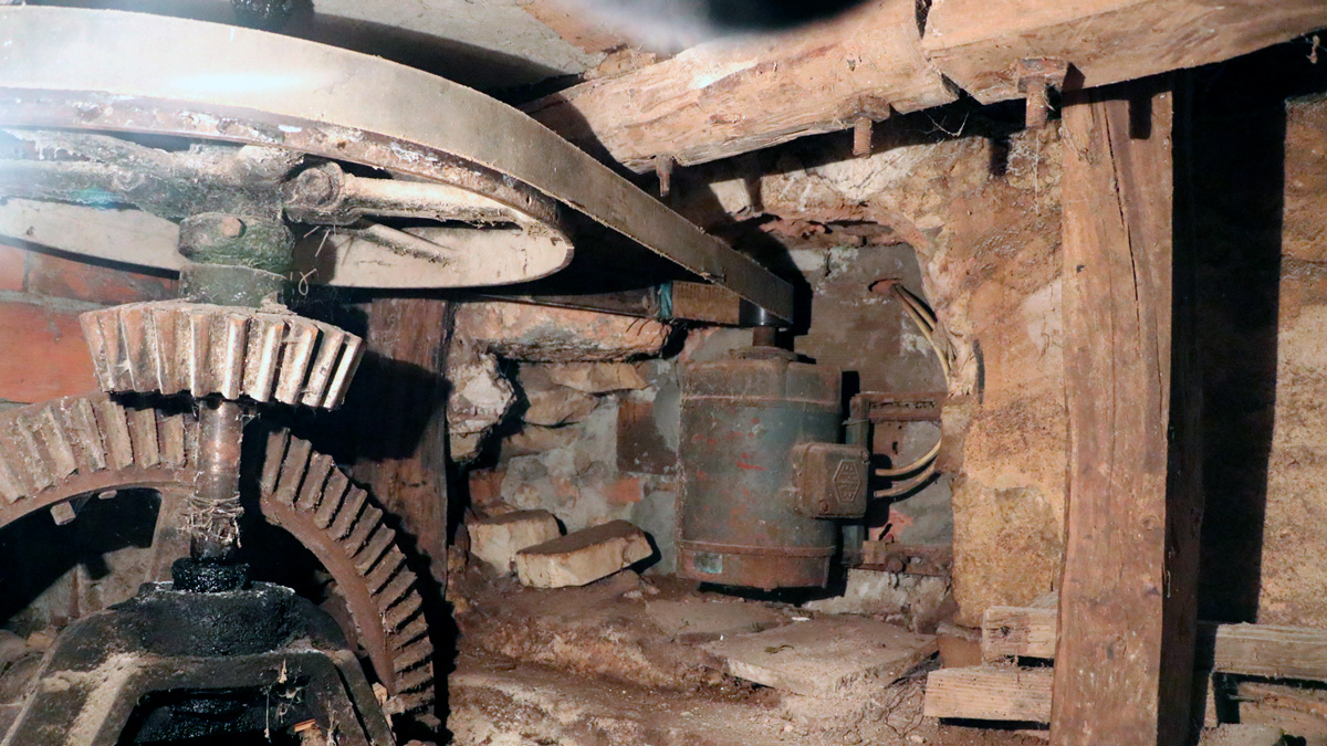 Adicionalmente, na parte interior do moinho, localizam-se a maioria das peças e instrumentos que fazem parte do processo de moagem dos cereais. Descrevemos alguns dos principais, desde o tegão, onde os cereais são depositados, até à tulha onde é guardada a farinha.