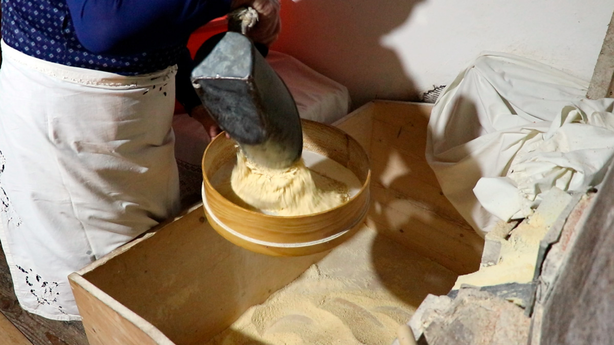 Tulha com farinha de milho e peneira ©Memória Imaterial