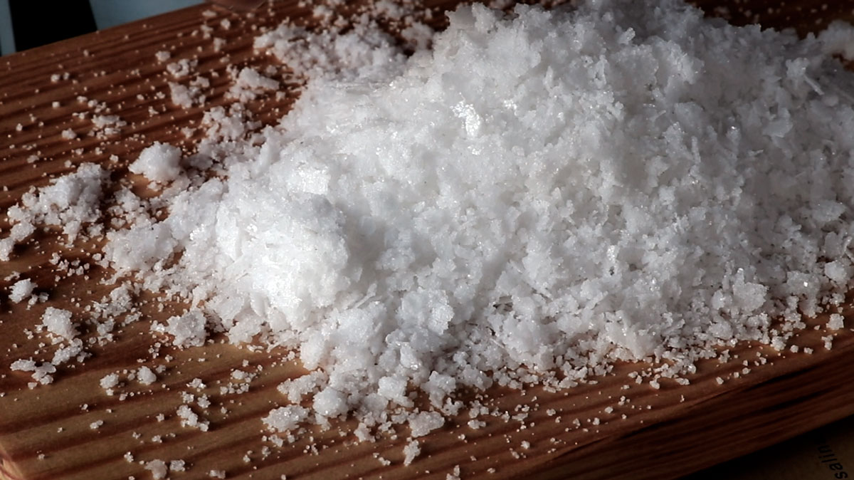 Para que se enquadre nos padrões de qualidade da Salarium, a flor de sal “(…) tem que ter lâminas e tem que ter o grão impercetível na mão!” Trata-se de um produto raro, que só consegue ser produzido em condições muito específicas: “É o nosso produto estrela!” (José Lopes).